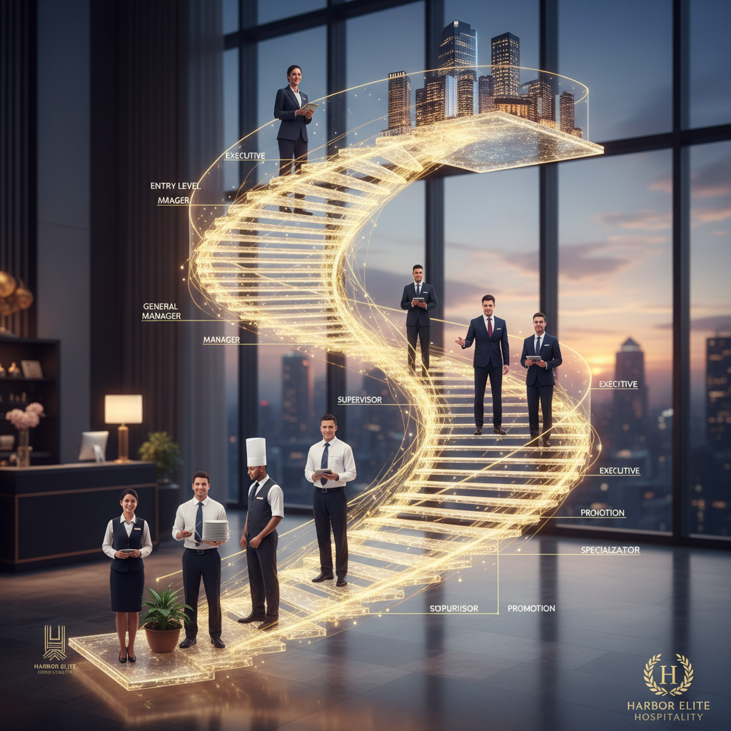 支配人を目指すキャリアパスは、一般的に「ゼネラリスト」ルートと呼ばれ、ホテルの様々な部門を経験しながら、幅広い知識とマネジメントスキルを習得していくのが特徴です。新卒で入社した場合も、転職でホテル業界に飛び込んだ場合も、基本的なステップは共通しています。